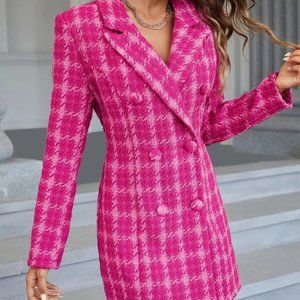 Plaid Double Breasted Pink Tweed Blazer Dress Mini Dress