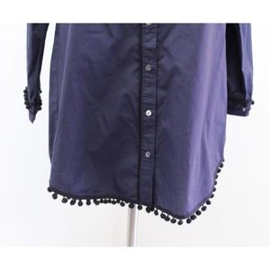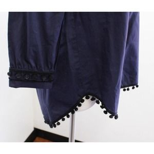 Derek Lam 10 Crosby Navy Blue Off the Shoulder Pompom Trim Tunic Top Blouse Sz 6