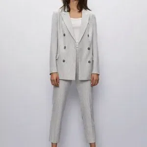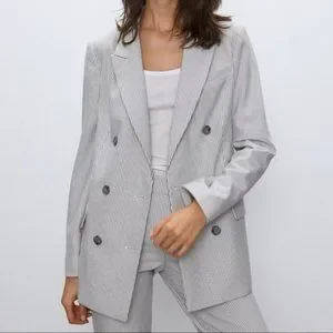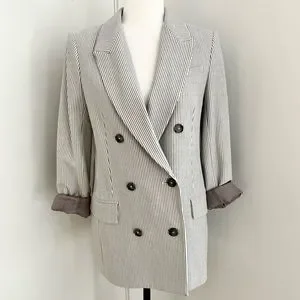 Aritzia Babaton Atelier Samuel Check Blazer | Size 4 | Espace/Grey Stripe