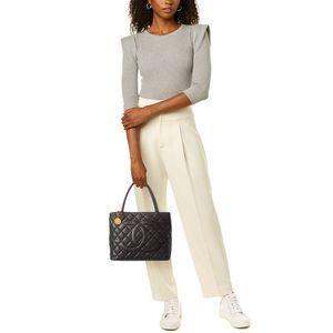About the brand: Founded by Coco Chanel in 1910, this French luxury fashion house revolutionized haute couture. Chanel offers exceptional and uncomplicated fashion, accessories, beauty, and luxury goods. This is an authentic, pre-owned piece. This item is in very good condition and shows light signs of wear. This item shows minor wear to corners, minor scratches to interior leather, slight loss of shape. For more information on condition, please see our condition guide at the bottom Medallion Tote in Black Quilted Caviar Leather with leather lining and gold-tone hardware Pockets: one exterior zip pocket, one interior slip pocket, one interior zip pocket Measurements: 11.5in long x 5.75in wide x 9.25in high; 6.75in handle Please note: All measurements were taken by hand and are approximate; slight variations may occur. Accompanied by dust bag Zipper closure Our products are 100% genuine. In some cases we purchase merchandise from trusted independent suppliers and not directly from the brand owner. In all cases we stand by the authenticity of every product sold on our site.