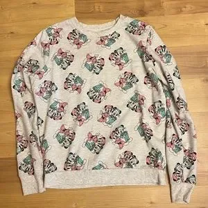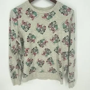 Women's Juniors Disney Mickey Minnie Mouse Christmas Holiday Sweatshirt LRG 765. In great shape gently used. Super mild pilling.