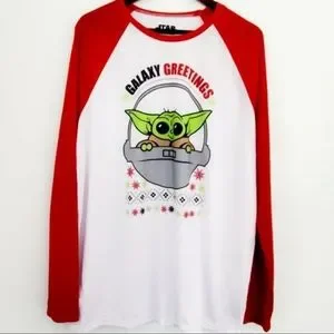 Men's Large Star Wars Baby Yoda Galaxy Greetings Christmas shirt
