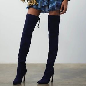 New Never Worn Natalia 100mm Black Suede Over the Knee Boot