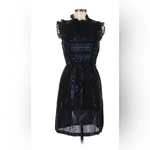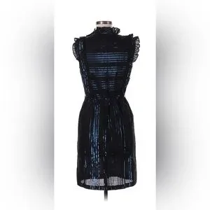 Twelfth Street by Cynthia Vincent Size 6 Black & Blue Shine Dress with Ruffles