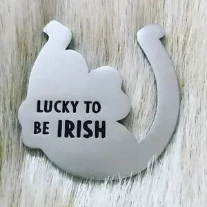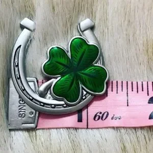A cute lucky charm for you to carry in your wallet or pocket. It does not have a loop to attach it to jewelry, it is simply meant to be carried, although with creativity you could probably turn it into a pendant! It has a horseshoe with a four leaf clover in it. The back says Lucky to be Irish. It makes a super cute gift. It is NWOT! I’ve added some photos of measurements to help you with size!