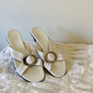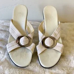Munro Sandals. Size 8. White elastic upper and padded insole for comfort. Worn several time. Good, used condition. 1 1/2” heel.