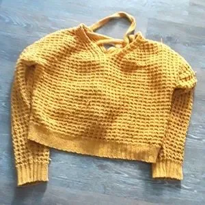 super cute gold sweater. super soft. there are little pulls that can be pulled back in.