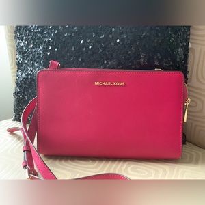 Michael Kors pink crossbody bag. 90%new. 25*16 cm
