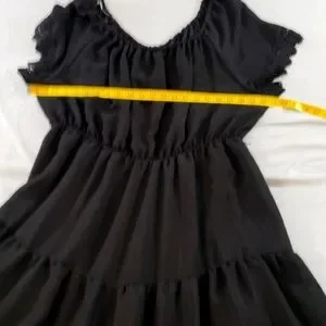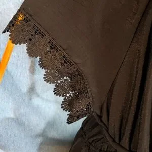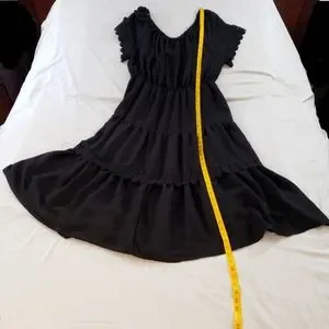 Indigo Rose Size 3X black Tiered belted lined Peasant Lace Trim Off the shoulder dress. GauzyPolyester + Rayon material