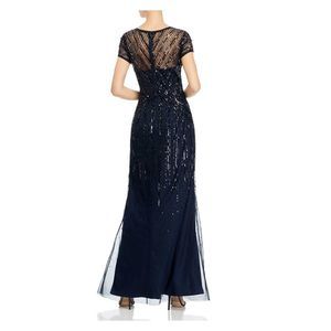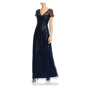 ADRIANNA PAPELL Womens Navy Beaded Gown Full-Length Formal Sheath Dress 10