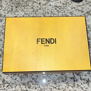 Black suede Fendis sandal. Muilticolor fox fur Pom poms as accents (red, yellow, light blue, orange, green, & gray). Comes with box and shoe bags and tags.