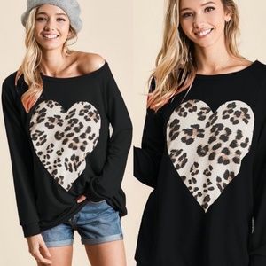 031 Cozy Leopard Print Heart French Terry Sweater Top