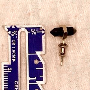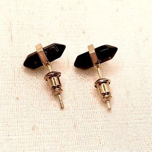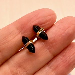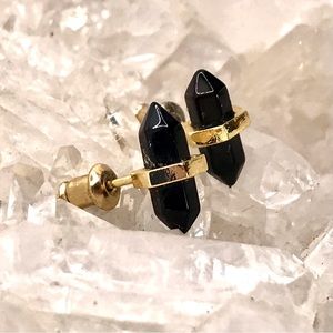 Petite black agate stones in a crystal point cut are featured in these little stud earrings. Great for multiple piercings.