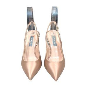 SJP by Sarah Jessica Parker Cy Pointed Toe Slingback Heel Nude Satin $495
