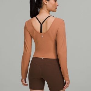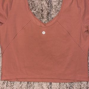 New without tags size 12 lululemon long sleeve align top. Orange rust color similar to stock photos. I don’t remember the exact color. V neck front.