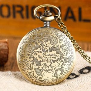Solid metal pocket watch featuring stunning 3D design with enamel inlay. Antique bronze finish. Doubles as a necklace.
