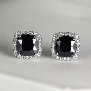 New 925 Silver Black Stone Sapphire Stud Earrings Luxury Square Wedding Earrings