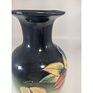 Vintage Hand Painted Tropical Exotic Orchid Floral 8" Flower Vase Art Nouveau