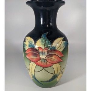 Vintage Hand Painted Tropical Exotic Orchid Floral 8" Flower Vase Art Nouveau Please see all photos Does have a few scratches