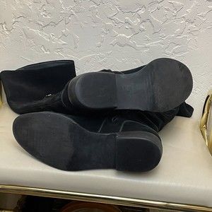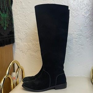 •UGG {5} 'Daley Gracen' Black Suede Tall Riding Boots Block Heel