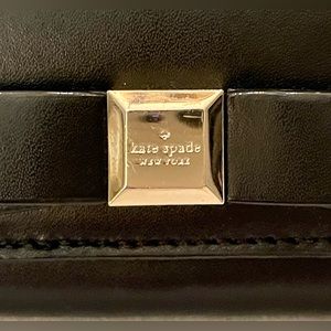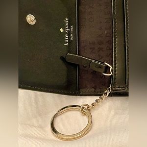 Adorable Black Leather mini wallet by Kate Spade. Adorned with a bow and gold tone keychain. Good condition.