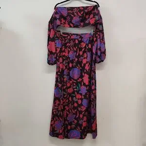 SHEIN Plus Floral Off The Shoulder Top & Split Thigh Skirt Set. Black Pink Blue Teal/Green **PLEASE NOTE COLORS APPEAR DIFFERENT ON EVERY DEVICE** Product details from original: