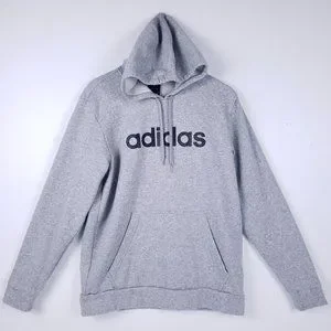 Adidas Sweatshirt Hoodie Size Large in Gray-Kangaroo Pocket-Fleece Lined