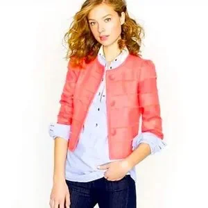 Chic, ladylike and versatile. J. Crew classic cropped jacked with frayed detailing in a beautiful shade of coral will be an instant energizer to a closet full of neutrals.