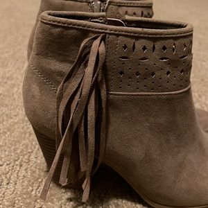 Tan Tassel Open Toe Bootie