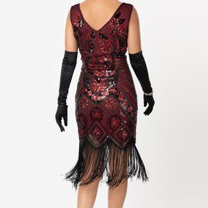 Unique Vintage Black and Red Sequin and Beaded Flapper Dress Size M