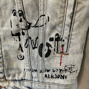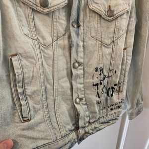 Zara Graffiti Art Oversized Distressed Denim Jacket