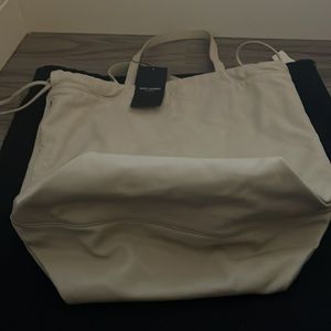 This beautiful Saint Laurent bag is brand new. I purchased this at the mall at Short Hills last year during my travels. It has never been used and still has the tag attached. There are no rips or stains that are visible to me. The purse comes with an attached wallet, and the dust bag is also included. It's soft leather with a black cloth lining on the inside of the bag. A very chic bag. It can be a winter bag or a summer bag; the cream color is extremely versatile. As I sad it’s versatile and can be used as a man bag. :-)