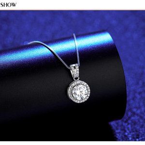 Certified 1ct. t.w. Moissanite Diamond Halo Necklace NEW K