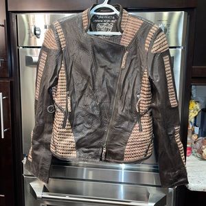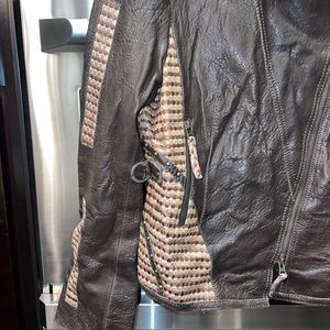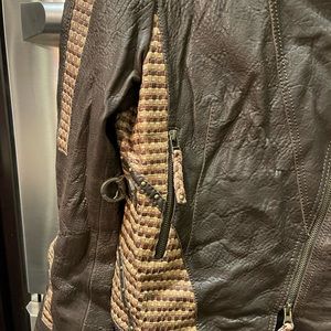 A luxury vintage garment chocolate brown beautiful leather with tan and brown weave