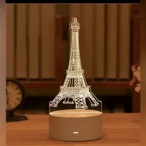 Stunning Eiffel Tower 3D Illusion LED Night Light. Great Christmas gift or room decor for kids or teens. USB warm white
