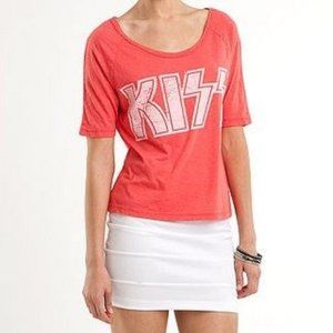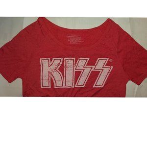 This is KISS band tee from Live Nation with distressed Logo on the front and 79 on the back. Heather Pink vintage style oversized Raglan Tee will definitely bring you back in 1979 happy time. 50% Cotton, 50% Polyester. Runs big, check measurements.