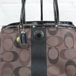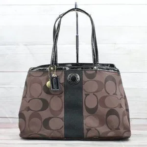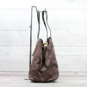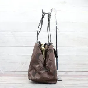 Coach F20105 Signature Brown Kisslock Carry All Purse Satchel Shoulder Bag