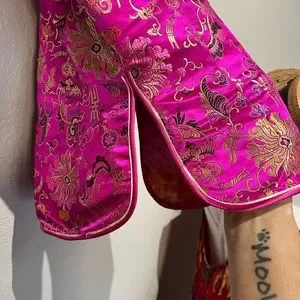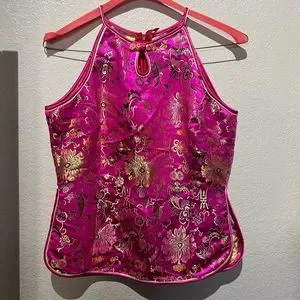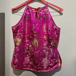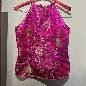 OMG! Look at this beautiful oriental silk top. Stunning fabric and details. Bright and super cute. Dress it up or down. Layering price for sure!