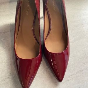 Red Calvin Klein Patten Leather US size 8 with 2.5 inch Heels - Slightly worn, see photos for minor flaws, Great Bargain for the holidays. Paid over $100.00 asking $45.00