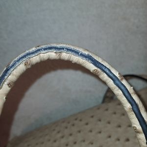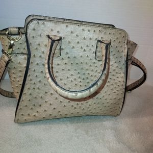 London Fog Faux Ostrich Leather Tan Hand Bag. Pre owned condition.
