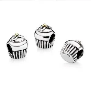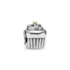 Authentic Pandora Retired Sterling Silver with 14K Gold Cupcake Food Bead, 925 ALE Stamp.