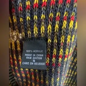 Patterned cardigan sweater with fringe, NWT Size S angieclothes.com grey, navy, red, yellow, very soft open front cardigan.