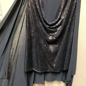 Black sequin cowl neck top. Cotton throughout