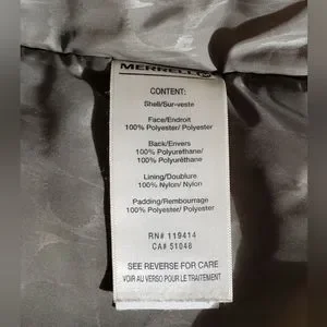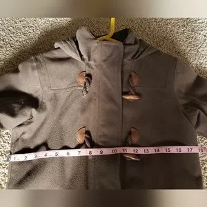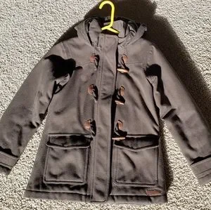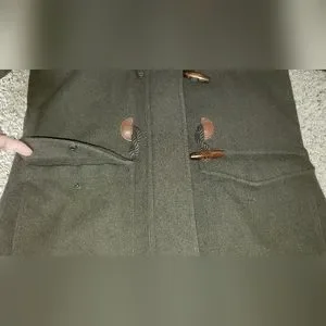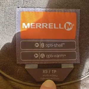 Like new! Merrell winter coat. Water resistant, and very warm. Wooden toggles and/or zipper front. Wooden toggles on sleeve. Elbow patches. Hood that you can cinch. Brown with a hint of olive.
