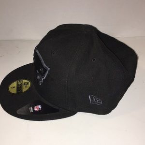 NEW ERA FITTED NEW ENGLAND PATRIOTS BALL CAP 59FIFTY SIZE 8 BLACK ON BLACK NWT.