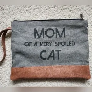 New, never used Cat Mom wristlet with leather across the bottom. #Cats #CatMom #Wristlet