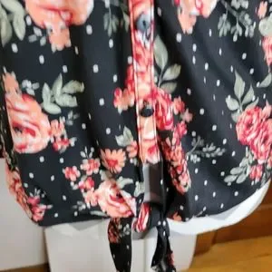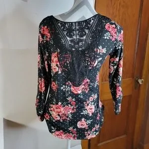 Womans no boundaries Floral and Black Knit top Tie front Lace Back Size Small