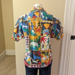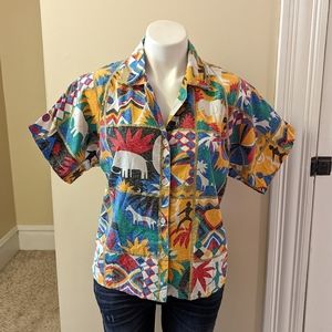 Vintage colorful tribal print button down cotton top size small