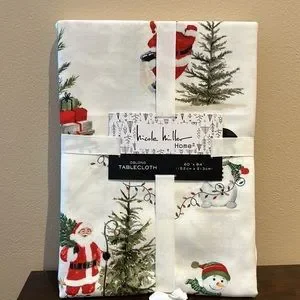 Nicole Miller Tablecloth Christmas Trees Lights Santa Claus Holiday 60”x84” New