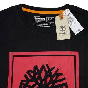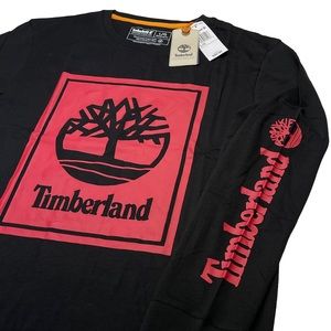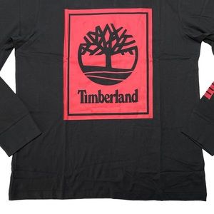 Timberland Cotton Black/Red Long Sleeve Stack Logo Regular Fit Mens Tee